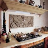 • Płaskorzeźba zdobiąca kuchenną ścianę to gzyms uratowany z rozbieranej kamienicy.
