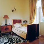 • Rozłożone na podłodze skóry zebry i tygrysa dodają empirowej sypialni egzotyki.