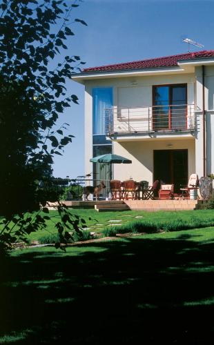 Dom otacza uporządkowany ogród. Nad rzeczką, pośród traw