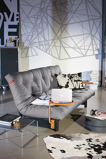 Może pełnić funkcję łóżka (jest rozkładana) albo minibiurka (na stolikach zmieści się laptop). Wymiary – 140 x 200 cm, cena – 4300 zł, Innovation, LE PUKKA