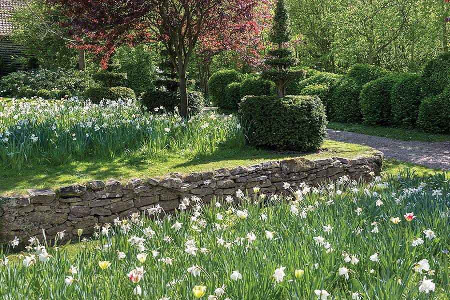 Pierwsze wiosenne kwiaty wyglądają w każdym ogrodzie imponująco, a co dopiero w jednym z najpiękniejszych ogrodów Francji. Między przystrzyżonymi bukszpanami rosną narcyzy, dzwonki, tulipany, hiacynty i dzikie orchidee.