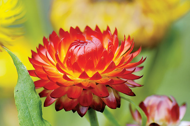 Zawsze mnie dziwiło, dlaczego kwiaty nieśmiertelników są takie suche. Wszystko stało się jasne, gdy dowiedziałam się, skąd pochodzą. Otóż w naturze są mieszkańcami Australii, gdzie długie okresy bez deszczu nie są niczym szczególnym. Przyroda musi oszczędnie gospodarować wodą – duże kwiaty i liście, z których szybko paruje wilgoć, byłyby marnotrawstwem. Zresztą tamtejsze rośliny często nie mają typowych kwiatów. To, co u nieśmiertelnika bierzemy za płatki, to ta