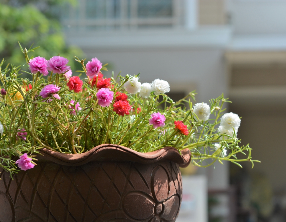 Portulaka wielkokwiatowa to jedna z najlepszych roślin na bardzo gorące balkony.