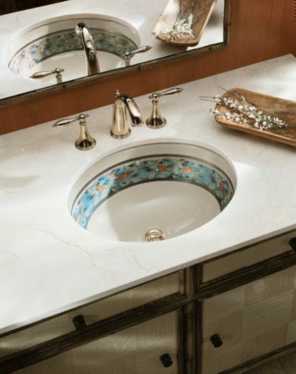 Bateria Finial (3990 zł) i malowana umywalka Laureate (5500 zł). KOHLER