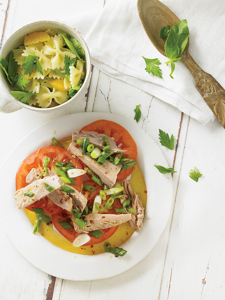 Tuńczyk na pomidorach. Nowalijki w stylu orientalnym