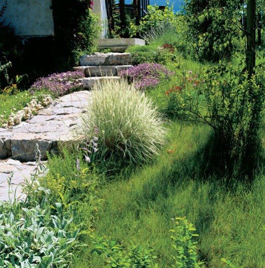 Ogród nie oznacza mnóstwa kwiatów, regularnych grządek i precyzyjnie wytyczonych ścieżek. Zgoda, wymaga aranżacji, ale przede wszystkim powinien dobrze prezentować się z salonu lub kuchni. Dlatego Jola i Marek dyskusje, gdzie posadzić rośliny, toczą, wyglądając przez okna. Nie zrobili projektu, w którym przewidziane byłoby wszystko. Słuchali raczej spontanicznie pojawiających się impulsów.Swój wspólny dom wybudowali na rozległej łące i chcieli uszanować ten kawałek nat