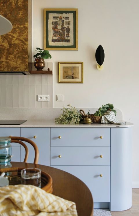 Aranżacja mieszkania 42 m2 – sprawdź, jak urządzić nastrojowe, przytulne wnętrze z błękitną kuchnią