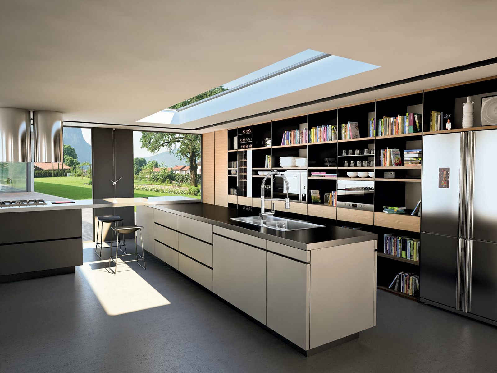 • BREDA WEISS, kuchnia z półkami i klasykiem dizajnu – fotelem Lounge Hair, HAECKER.