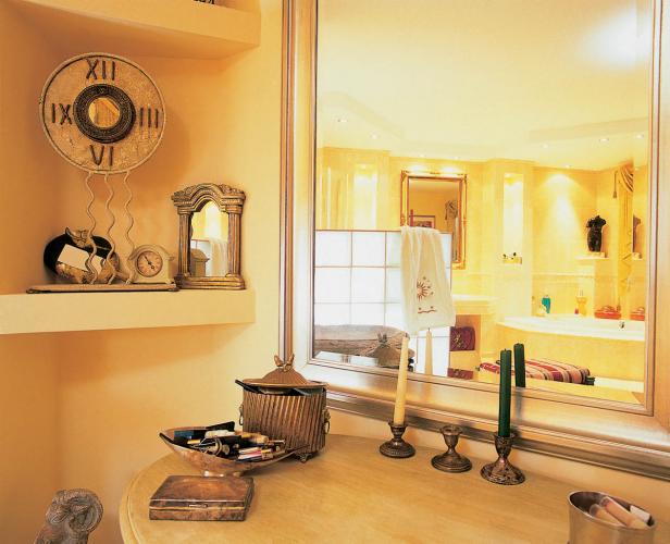 W łazience nie mogło zabraknąć bibelotów.