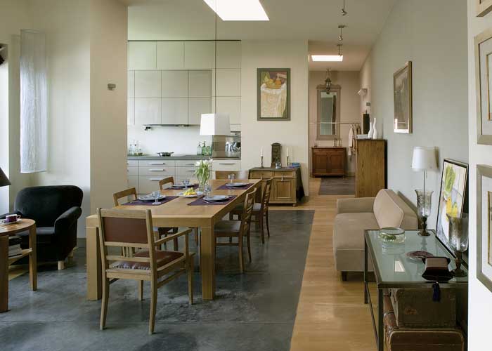 Nowoczesne mieszkania są zwykle chłodne. Tutaj, dzięki kolorom i obrazom, powstało wnętrze tak przytulne, że nawet beton nie wygląda surowo. Nic dziwnego, że kolacje z przyjaciółmi przeciągają się często do śniadania.Stare warszawskie Powiśle, otoczone parkami, a jednak w pobliżu centrum, od razu przypadło do gustu Marysi i Maksymilianowi. Wcześniej urzekło też Jana Nowaka-Jeziorańskiego, który był jednym z pierwszych