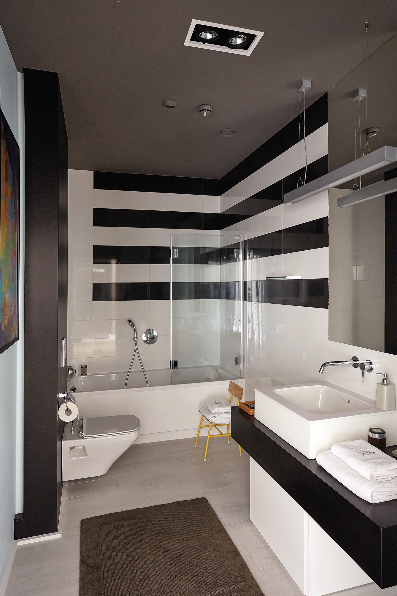 • Kuchnia zrobiona z różnych materiałów i faktur ma bardzo graficzny charakter. Obniżony sufit to nawiązanie