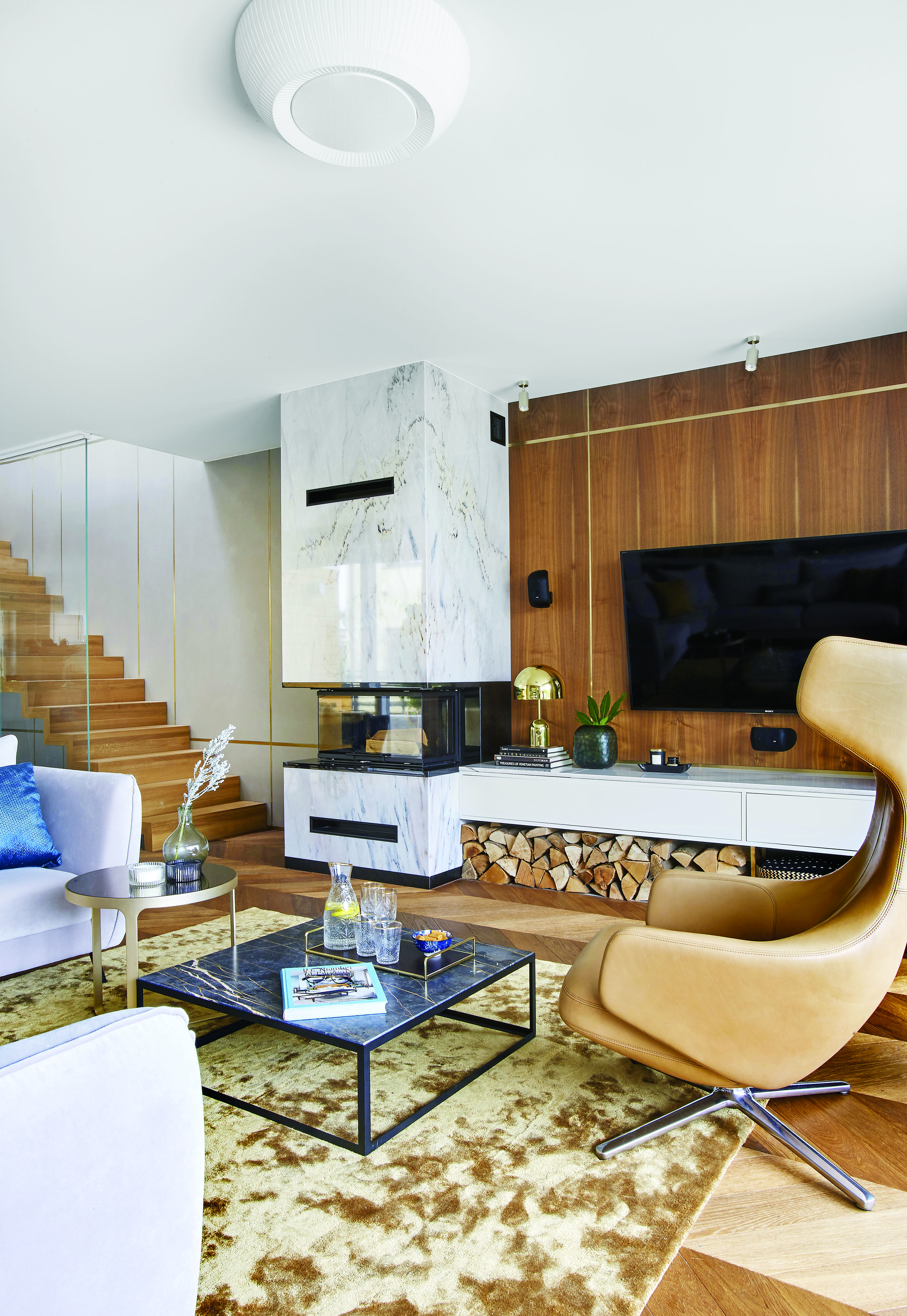 • elegancki salon z kominkiem