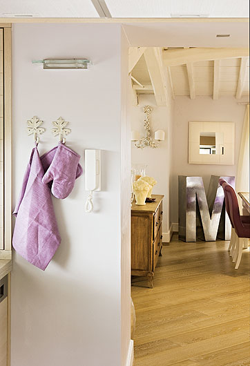 Słabość gospodyni do fioletu widać w tym domu na każdym kroku.