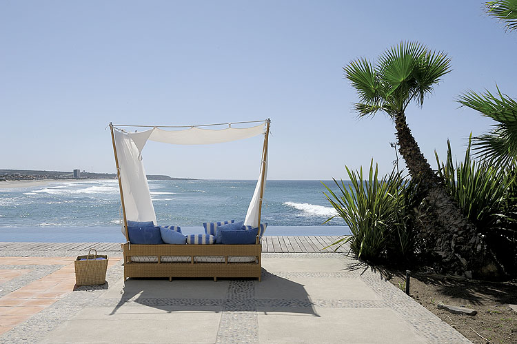 Łóżko plażowe, z którego można podziwiać fale.