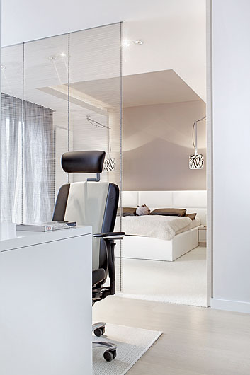 Na pierwszy rzut oka to „tylko” elegancki apartament. Bo najważniejsze jest w nim sprytnie ukryte. Można być na końcu świata i... zerkać, co dzieje się w salonie. Pan Adam lubi dyskretny luksus, oglądanie filmów i słuchanie muzyki. Pasjonuje go robienie zdjęć, często na drugim końcu globu, bo sporo podróżuje. Pan Adam nie lubi klasycznych wnętrz zatłoczonych przedmiotami, bo w nich nie odpoczywa. Irytuje go, gdy rzeczy nie mają swojego miejsca i trzeba je upchnąć gd