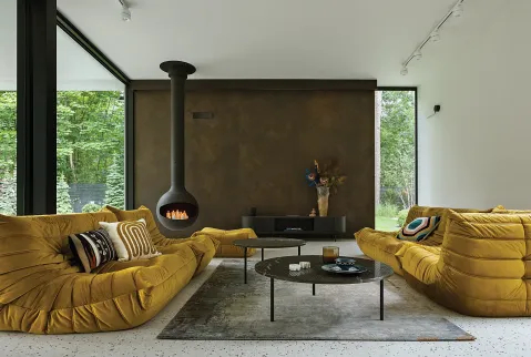 Nowoczesny przeszklony dom w sosnowym lesie – wnętrza ozdabia ciągle powiększana kolekcja malarstwa i rzeźby