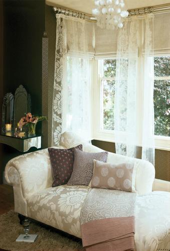 • Szezlong obity tkaniną firmy Villa Nova, kolekcja Florence, aranżacja DECODORE.