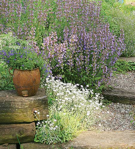 • Ogród dzielą kamienne murki. Ogród jak sprzed lat