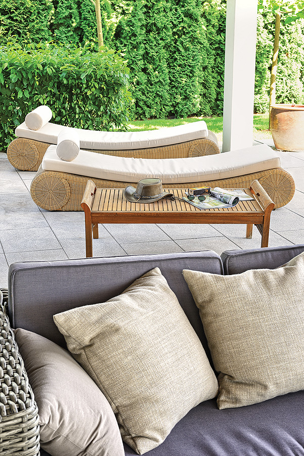 • Leżanki w letnim salonie. Ogród dla zapracowanych
