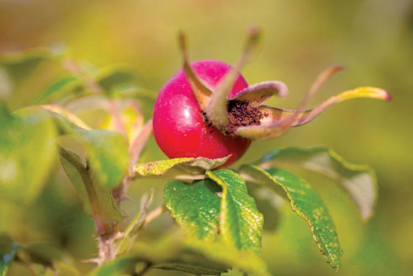 • Owoc róży pomarańczowej. Ogród malowany jesienią