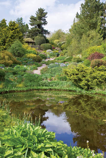 • Zaciszne oczko wodne porośnięte funkiami, cisami, jałowcami i wrzoścami.