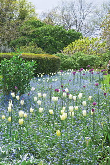 • Bukszpan tworzy idealne tło dla tulipanów.