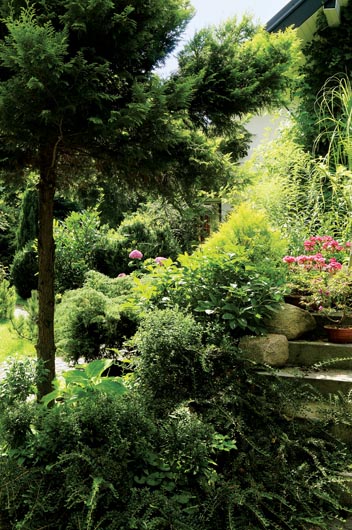 Ten ogród wygląda, jakby wyszedł spod pędzla malarza – bo kto inny umiałby tak oddać grę światła i cienia, ba, nawet nie grę, ale zmysłowy taniec.– Wychowałam się w domu z ogromnym ogrodem – opowiada Monika. – Dlatego, gdy z mężem zdecydowaliśmy się zamieszkać pod Warszawą, przede wszystkim skupiłam się na zieleni. Któregoś dnia agent pokazał jej olbrzymią, porośniętą chaszczami działkę ze starym, mocno zniszczonym budynkiem. Gdy on wyjaśniał, w jaki spos