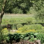 Posadził trawy i irysy, które w sąsiedztwie rzeki czują się najlepiej.