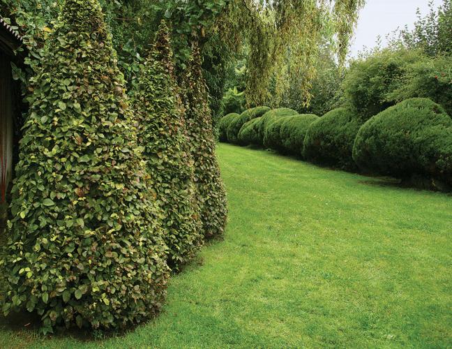 • Potężne żywopłoty-ściany dzielące poszczególne części ogrodu powstały z grabów.
