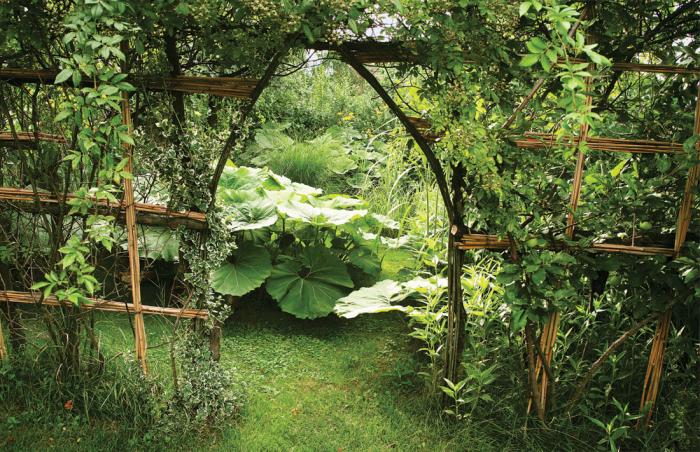 • Płotek upleciony z suszonych traw. Ogród pełen traw i żywopłotów