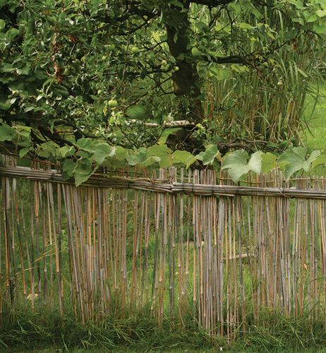 • Płotek upleciony z suszonych traw. Ogród pełen traw i żywopłotów