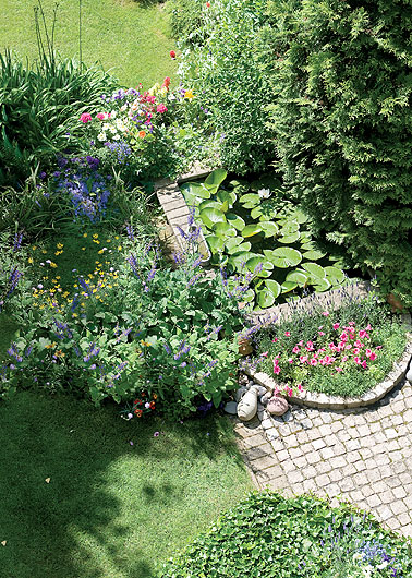 • Otoczone klinkierowymi cegłami, na tyle głębokie, że ukochane przez panią Barbarę lilie nie marzną zimą, bo schowane są pod