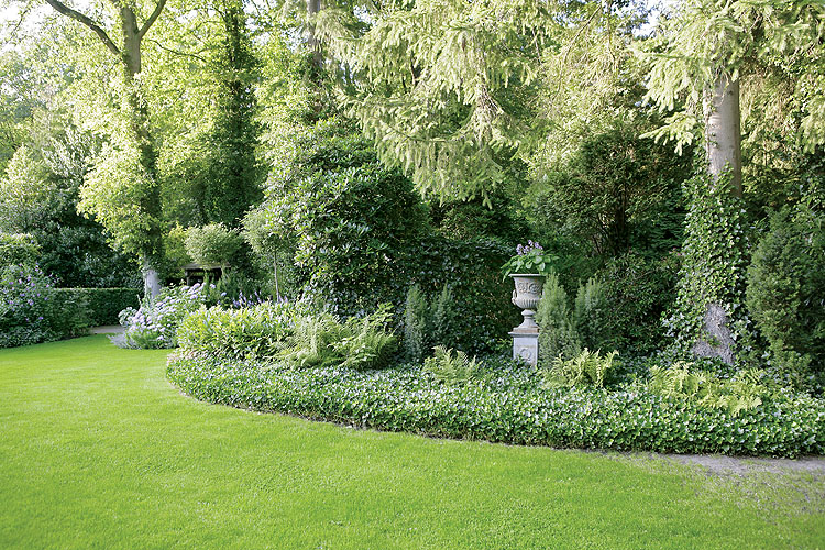 Ogród w lesie? Da się zrobić. Trzeba tylko wybrać takie rośliny, które nie grymaszą: bluszcz, bukszpany, hosty i mało wybredne marcinki.