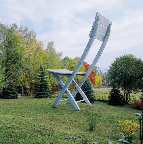 Dziesięciometrowe krzesło to symbol architektury niemożliwej Kantora. Pierwowzór stanął w 1971 roku w