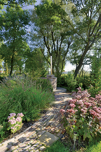 Tutaj rządzą miskanty i rozplenice. Rosną błyskawicznie i zasłaniają przed wścibskimi spojrzeniami. Gdy rozkołysze je wiatr, cichutko szeleszczą, a wtedy wiadomo, że ogród nie śpi. Kamień A może motywem przewodnim zrobimy ścieżkę? – rzucili hasło projektanci zieleni. Pan Wojciech postanowił się nie wtrącać, a jego żona, pani Ewa, dała wolną rękę i kazała działać. I ogrodniczy duet – Joanna Lis oraz Ziemisław Burchard – zadziałał. Swoich klien