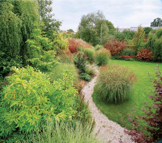 • Żwirowa ścieżka gubi się w gęstwinie kolorowych traw. OGRODY DANKIEWICZ