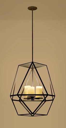 Lampa wisząca z wiecznymi świecami. Projekt - Kevin Reilly.