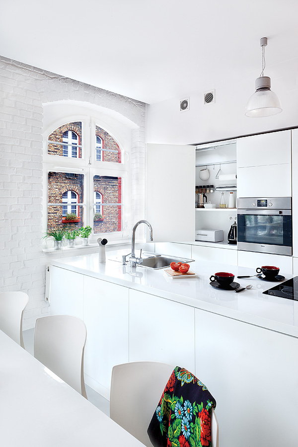 Katowicki familok z pomalowanymi na czerwono oknami. Dla architektów przywiązanych do tradycji wymarzone miejsce. Nic, tylko szaleć.   Kto by powiedział, że kiedyś panował tu wieczny półmrok. Że z ponurego korytarza, który ciągnął się przez całą długość mieszkania, wchodziło się do pokojów-klitek. I że w łazience nie było nawet jak się obrócić. Oglądający już na progu robili w tył zwrot. Tylko Magda i Piotr wyczuli możliwości tego wnętrza. Są arc