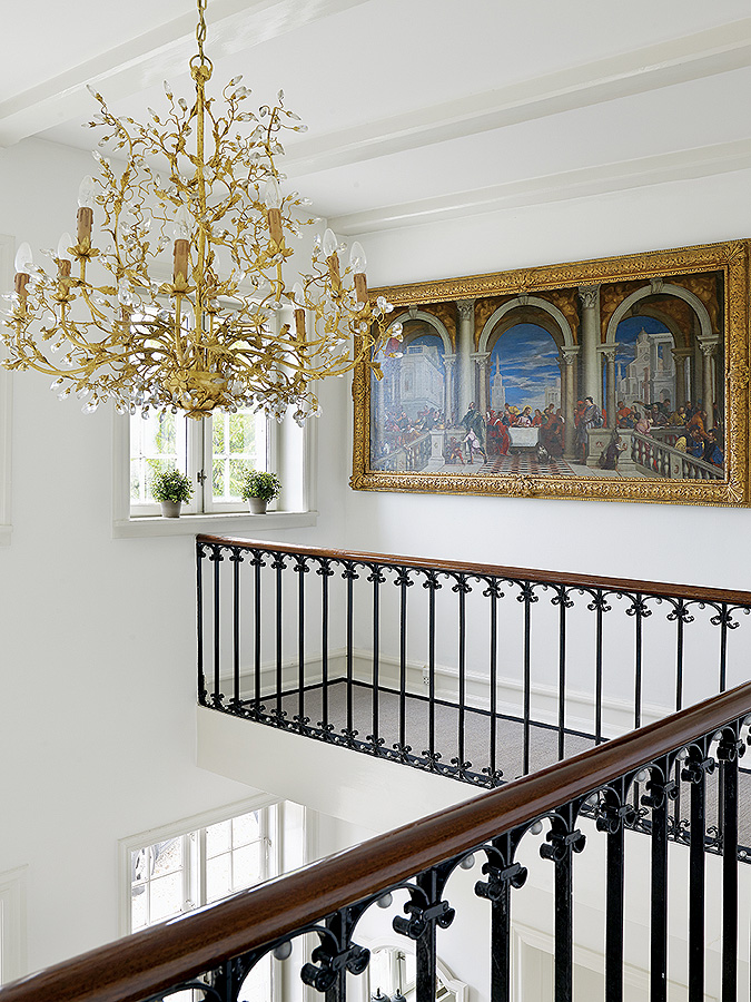 W całym domu wiszą piękne kryształowe żyrandole - złoty kolor ożywia wnętrze.