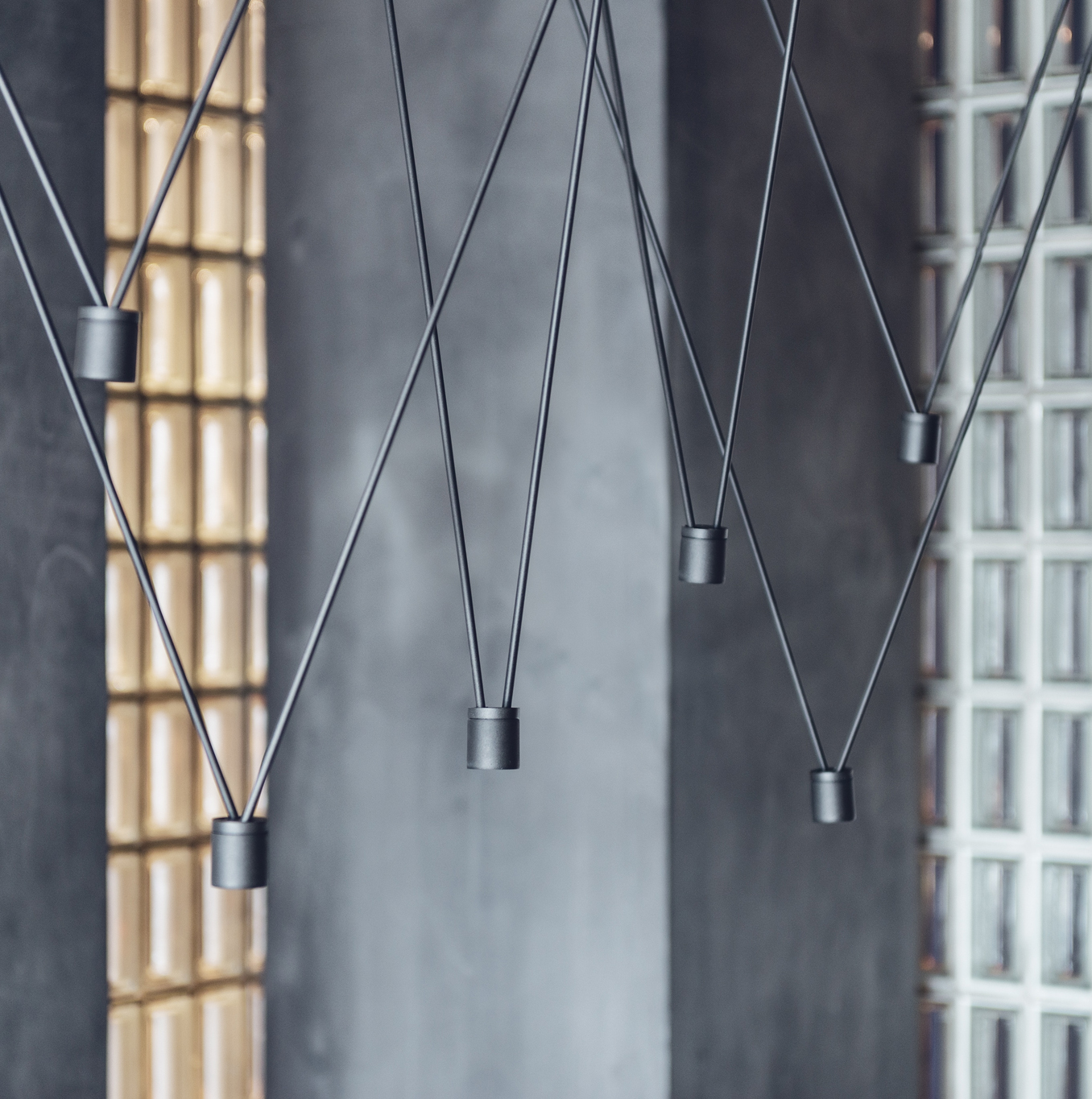 Lampa marki Vibia - główna dekoracja salonu.