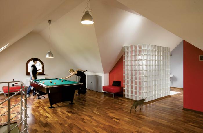 Na poddaszu, w pokoju z bilardem, gospodarze urządzają imprezy. Kiedy zabawa się przedłuża, goście mogą przenocować.