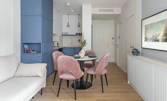 • małe mieszkanie beż i niebieski