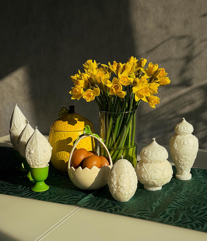 Dekoracyjne świece na wielkanocy stół, ręcznie robione z naturalnego wosku palmowego, verkoi.pl