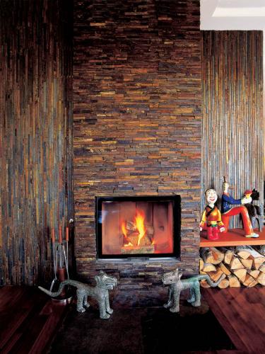 • Przy wyłożonym kamieniem kominku stoją orientalne figurki - też, oczywiście, pamiątki z podróży.