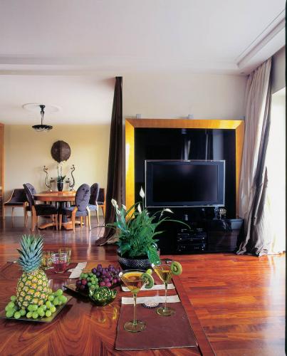 • Przy wyłożonym kamieniem kominku stoją orientalne figurki - też, oczywiście, pamiątki z podróży.