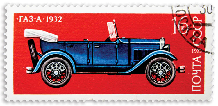 • Znaczek pocztowy z Chevroletem. Pan samochód i samochodziki
