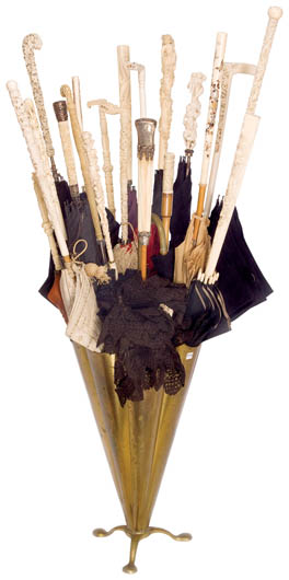 • Kosz wiktoriańskich parasoli z rączkami z kości słoniowej, 1890 r., z kolekcji Gary ego Durow/fot. Steve Dean