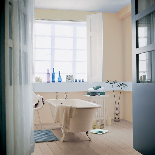 • Wystarczy jedna ściana w tym kolorze, by poranna toaleta przypominała o błękicie letniego nieba. Fot. Beckers.
