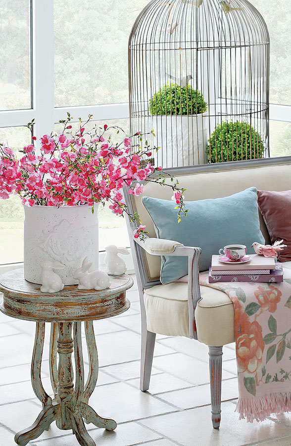 • Pastelowe dekoracje wielkanocne przepięknie wyglądają w stylizowanym, francuskim salonie.