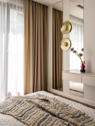 • zasłony w sypialni z grubej tkaniny bouclé